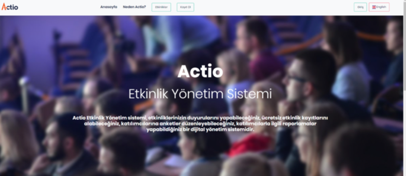 1) http://www.actioevents.com linkine tıklayın. Açılan sayfada üst menüde yer alan kayıt ol butonuna tıklayın.