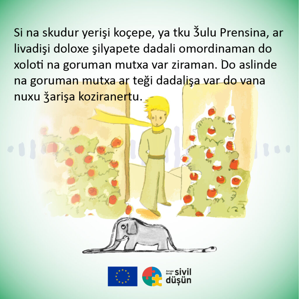 Lazca, Kürtçe ve Adiğece dilleri ile yolculuğuna başlayan Anadolu Dillerinde Küçük Prens projesi böyle doğdu. Proje, Anadolu coğrafyasında hala konuşulmakta olan dillere çevrilen Küçük Prens kitaplarının alt yazılı ve sesli kitap haline getirilmesini kapsıyor.